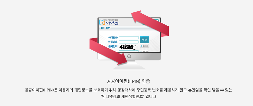 경찰대학은 사용자의 개인정보보호를 위해 2013년 11월 25일부터 공공아이핀(I-PIN) 전용 서비스로전환 되었습니다.